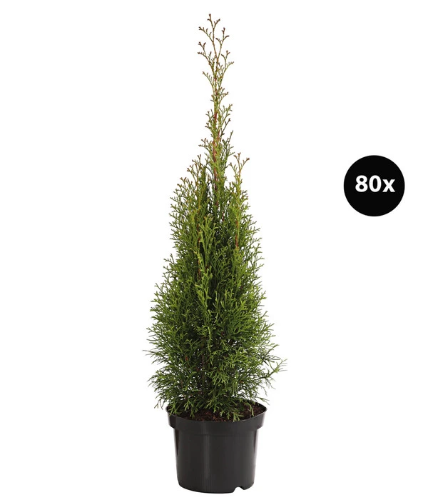 Wenn man Thuja hört, denkt man schon automatisch an die wunderschönen, dicht gewachsenen Hecken, die im Sommer als auch im Winter in sattem Grün erstrahlen. Der Lebensbaum ist eine der beliebtesten Heckenpflanzen bei uns und das liegt vor allem an seinem geschniegeltem Aussehen. Seine Nadeln sind glatt, fein, leicht glänzend und sehr dicht wachsend. Doch die Thuja sieht nicht nur gut aus, sie ist auch extrem anpassungsfähig. Egal ob auf sandigem oder festem Boden, die Pflanze fühlt sich überall wohl. Außerdem sieht der Lebensbaum nicht nur in jungen Jahren so hübsch aus, sondern behält sein Aussehen über die Jahre hinweg und ist durch sein dichte, gedrungene Form einfach ideal als Heckenpflanze geeignet. Sind Sie also auf der Suche nach einer immergrünen, blickdichten Hecke rund um Ihren Garten, dann ist der Lebensbaum ‚Smaragd‘ Ihr perfekter Pflanzpartner.