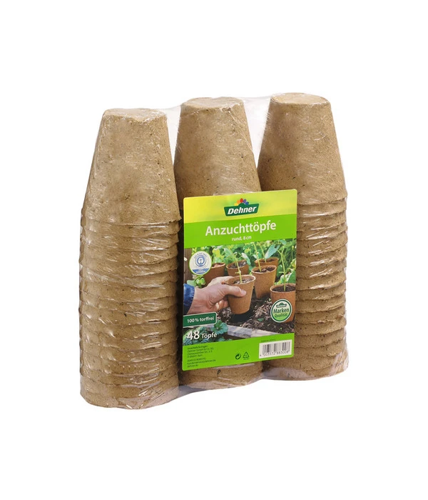Sie haben sich entschieden, Ihre Pflanzen ab sofort selbst zu ziehen? Dann sind Dehner Anzuchttöpfe in der 48er-Packung eine schlaue Anschaffung. Diese Menge an jungen Pflanzen kommt schneller zusammen als man glaubt. Und gleichzeitig sparen Sie damit ganz ordentlich im Vergleich zu kleineren Gebinden. Dehner Anzuchttöpfe sind zudem auch eine Entscheidung für Qualität. Sie werden aus bis zu 85% PEFC-zertifizierter Zellulose gefertigt. Das bedeutet, Ihre zukünftige Anzuchtstation besteht aus Töpfchen, deren Material aus nachhaltiger Waldwirtschaft stammt, bei der auch auf die Erhaltung der Ökosysteme geachtet wird. Sie sind so gefertigt, dass sie sich leicht durchwurzeln lassen. In den hochwertigen Töpfchen können sowohl Balkon- als auch Gartenpflanzen gezogen werden.