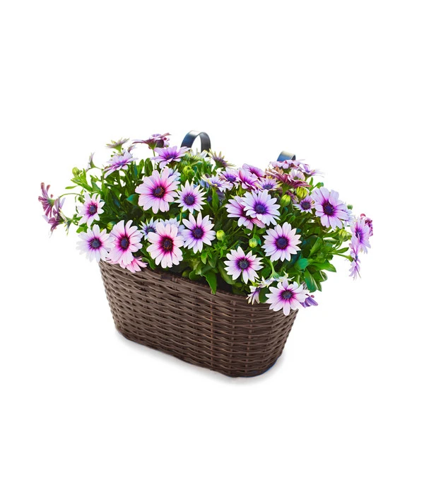 Es müssen nicht immer komplizierte Systeme her, um Balkon, Terrasse oder auch Innenräume mit hängendem Blütenzauber zu dekorieren. Sehen Sie sich am besten diesen wirklich hübschen Polyrattan-Hängetopf an und die Lösung liegt sofort auf der Hand. Er ist groß genug, um 2-3 kleine Pflanztöpfe aufzunehmen und eröffnet Ihnen auf diese Weise viele Möglichkeiten der Gestaltung. Unser Tipp: gestalten Sie den Topf mit unterschiedlich wachsenden Pflanzen. Sehr schön wirkt es, wenn Sie beim Polyrattan-Hängetopf eine schmale, hohe Pflanze in die Mitte setzen und links und rechts daneben je eine Hängepflanze. Oder Sie gestalten den Dehner Polyrattan-Hängetopf mit Pflanzen in unterschiedlicher Blütenfarbe. Ganz gleich, wofür Sie sich entscheiden, der angenehm warme Braunton macht den Polyrattan-Hängetopf mit den unterschiedlichsten Blütenfarben kombinierbar. Lassen Sie Ihrer Phantasie einfach freien Lauf! Wenn Sie entschieden haben, wo der Dehner Polyrattan-Hängetopf hängen soll, genügt ein Handgriff und schon ist Ihre Deko perfekt. Der Polyrattan-Hängetopf eignet sich übrigens auch, um einen französischen Balkon zu verzaubern.