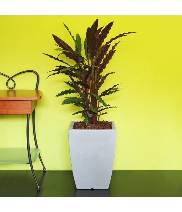 Auf den ersten Blick erweckt das Farmet Kunststoff-Topf-Set Hydrus den Eindruck, als wäre es aus schwerem Beton gegossen. Dieser Look macht auch seinen besonderen Charme aus. Erst wenn Sie die Pflanzkübel anheben, stellen Sie fest, dass hier robuster Kunststoff im Spiel ist. Hergestellt im Rotationsverfahren, begeistern sie mit ihrem geringen Eigengewicht. Genau diese Tatsache erleichtert Ihnen die Handhabung im Alltag, wenn Sie beispielsweise Ihr Arrangement verändern oder Ihre Pflanzen mitsamt den Übertöpfen zum Saisonende ins Winterquartier umlagern möchten. Selbst ständig verändernde Witterungseinflüsse können den hochwertigen Töpfen nichts anhaben, denn sie weisen eine hohe UV- und Frostbeständigkeit auf. Ebenso wie Moos und Verunreinigungen, die sich mühelos mit einem feuchten Tuch abwischen lassen. So sorgt die Haltbarkeit und Pflegeleichtigkeit dafür, dass Sie lange Freude an dem Set haben. Worauf warten Sie noch? Bestellen Sie das moderne Topf-Set jetzt gleich hier online!
