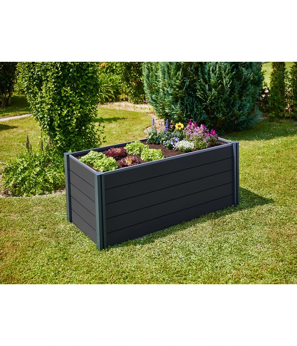In Ihrem Garten ist noch ein Plätzchen frei und Sie lieben selbst angebautes Gemüse? Dann statten Sie Ihr Zuhause doch mit dem Hochbeet Elevada von Gutta aus und freuen Sie sich bald auf reiche Ernte. Die erhöhte Bauweise sorgt dafür, dass Sie komfortabel und rückenschonend im Stehen arbeiten können. Zudem schützt die Konstruktion Samen und Pflänzchen vor Schädlingen und erschwert Schnecken und anderen ungebetenen Gästen den Zugang zu Ihrem Beet. Außerdem kommen Sie beim Hochbeet Elevada von Gutta in den Genuss einer verlängerten Saison, da es eine natürliche Isolierung gegen den Frost vom Boden bietet.