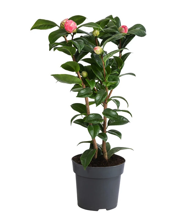 Ihre Blüten haben Dichter zu berühmten Werken inspiriert und entzücken Pflanzenfreunde in der ganzen Welt – Kamelien gehören neben Rosen zu den Königinnen unter den Blühpflanzen. Diese Japanische Kamelie trägt dicht gefüllte Blüten, die je nach Sorte in allen Variationen von Schneeweiß über Rosé, Pink bis Dunkelrot leuchten. Was die Japanische Kamelie so wertvoll macht: Sie präsentiert ihre Blütenpracht zu einer Zeit, wenn wir uns besonders nach Farben sehnen: zwischen Februar und April. Neben den spektakulären Blüten zeigt die japanische Rose, wie die Pflanze auch genannt wird, einen anmutigen, aufrechten, dichten Wuchs und kann stattliche Höhen von 200-300 cm erreichen. Worin die Japanische Kamelie unseren heimischen Rosen außerdem überlegen ist: sie ist immergrün und zeigt sich Ihnen ganzjährig im Schmuck ihres dunkelgrün glänzenden Blattkleids. Lassen Sie sich bald von dieser extravaganten Schönheit verzaubern – im Sommer unter freiem Himmel und in den übrigen Monaten im Wintergarten!