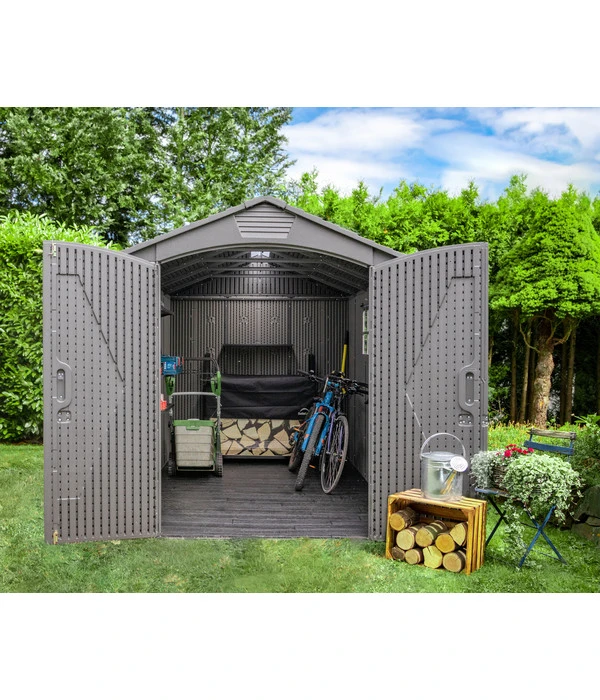 Wenn Sie gerne alle Ihre Gartengeräte an einem Platz wissen, um sie für den nächsten Einsatz griffbereit zu haben, ist das attraktive Gerätehaus Stella der Marke Lifetime bestimmt eine gute Wahl für Sie. Es bietet breite Doppeltüren, damit Sie ausladende Maschinen wie beispielsweise einen Aufsitzrasenmäher komfortabel hineinstellen und ohne lästiges Umräumen hinausfahren können. Zugleich ist das Haus kompakt und lässt sich dadurch gut an vielen Orten aufstellen. Als äußert vorteilhaft erweist sich die Verwendung von hochwertigem Kunststoff, der das Produkt von Liftime pflegeleicht und wartungsfrei macht. So haben Sie mehr kostbare Zeit zur Verfügung, Ihren Garten entspannt zu versorgen und zu genießen.