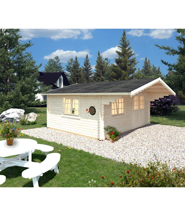 Mit dem Gartenhaus Sally aus dem Hause Palmako steht Ihnen ein wahrer Klassiker der Blockhäuser zur Verfügung. Schon die Verwendung der hochwertigen massiven Blockbohlen zeugt von höchster Qualität. Die verglaste Doppelflügeltür und zahlreiche Sprossenfenster sorgen durch ihre Isolierverglasung für eine angenehme Atmosphäre im Innern des mit einem stabilen Fußboden versehenen Gebäudes. Es gibt für dieses großzügige Outdoor-Anwesen eine nahezu unerschöpfliche Anzahl von Nutzungsmöglichkeiten. So ist es beispielsweise perfekt als Partyraum geeignet, kann als Atelier für Hobbys genutzt werden sowie als Ort der Entspannung, um ungestört zu meditieren oder Yoga zu betreiben. Natürlich können Sie im Palmako Gartenhaus Sally darin auch eine hochwertige Werkstatt einrichten oder Gartenzubehör lagern.