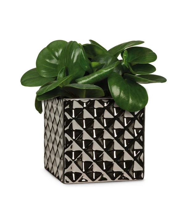 Sie lieben auffällige und modische Deko-Elemente, die Ihre Zimmerpflanzen wunderbar ergänzen? Wie wäre es mit einem trendigen Übertopf, der das Erscheinungsbild Ihrer Pflanze perfekt abgerundet und Ihrem Interieur den letzten Schliff verleiht? Dann ist der Scheurich Keramik-Übertopf Titanium genau das Richtige für Sie. Mit der glänzenden Oberfläche und der markanten Diamant-Struktur setzt das Accessoire einen trendigen Akzent in Ihrer Einrichtung. Ob solo platziert oder im Zusammenspiel mit anderen stylischen Töpfen – der Keramik-Übertopf Titanium von Scheurich zieht die Blicke auf sich. Optimal zur Geltung kommt dieses Zubehör mit blühenden Zimmerpflanzen, aber bestimmt haben Sie schon eine Idee, wie Sie den Behälter am besten kombinieren.