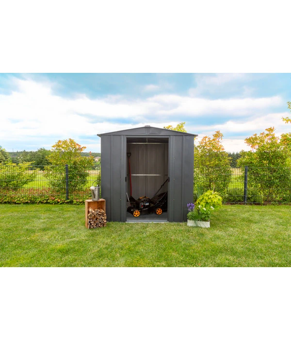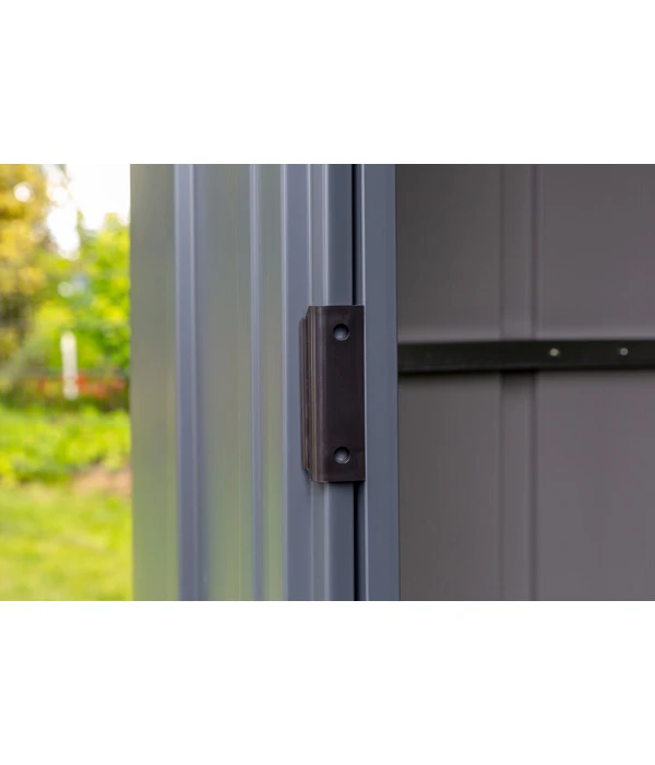 Das Gerätehaus aus dem Hause Spacemaker fügt sich durch sein schlichtes, edles und stilvolles Design schnell ins bestehende Garten-Arrangement ein, wo es vielfältig zu diversen Gartenmöbeln und mehr kombiniert werden kann. Eine verzinkte Oberfläche garantiert Ihnen dauerhafte Rostresistenz sowie Kratzfestigkeit, sodass Sie ein langlebiges Gerätehaus erhalten, das im hervorragenden Zustand verbleibt. Schnell haben Sie es dank seiner vorgebohrten Teile aufgebaut und können zügig vom ausgiebigen Stauraum profitieren. Das Metallgerätehaus von Spacemaker punktet nicht zuletzt mit innenlaufenden Schiebetüren, die für eine platzsparende Konstruktion stehen und eine Vorrichtung für den Einsatz eines Sicherheitsschlosses bereithalten. Entscheiden Sie sich jetzt für das Spacemaker Metallgerätehaus, das durchdacht designt wurde, einen sicheren Platz für viele Dinge bietet und natürlich auch durch Unempfindlichkeit überzeugt!
