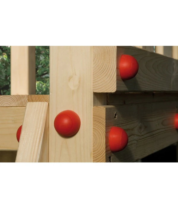 Kinderstelzenhaus 815 aus sauber gehobeltem Nadelholz (kdi), in stabiler Blockbohlenbauweise, abgerundete Kanten, mit Sicherheits-Haltegriffen, Podestboden aus 19 mm starken Bohlen, Wandschalung und Dach aus 14 mm starker Schalung