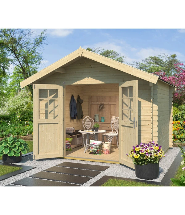 Lieben Sie Ihren Garten und wünschen sich ein schnuckeliges Gartenhaus, das viele Möglichkeiten der Verwendung bereit hält? Dann ist das Gartenhaus 209 von Weka die richtige Wahl für Sie. Die zeitlose, klassische Optik des Gartenhauses wird auf perfekte Weise kombiniert mit seiner praktischen Seite. In dem geräumigen Innenraum finden Gartenmöbel und Geräte genügend Platz. Lassen Sie Chaos bei den Gartenutensilien erst gar keine Chance! Darüber hinaus kann das Haus auch als gemütlicher Rückzugsort im Freien genutzt werden. Die hochwertige Doppelrahmen-Tür sorgt mit einem großen Lichtausschnitt für genügend Helligkeit im Inneren.