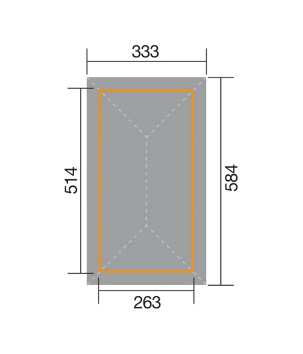 Dachüberstände: Seiten je ca. 35 cm, vorne und hinten 35 cm