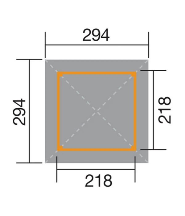Dachüberstände: Seiten je ca. 38 cm, vorne und hinten 38 cm