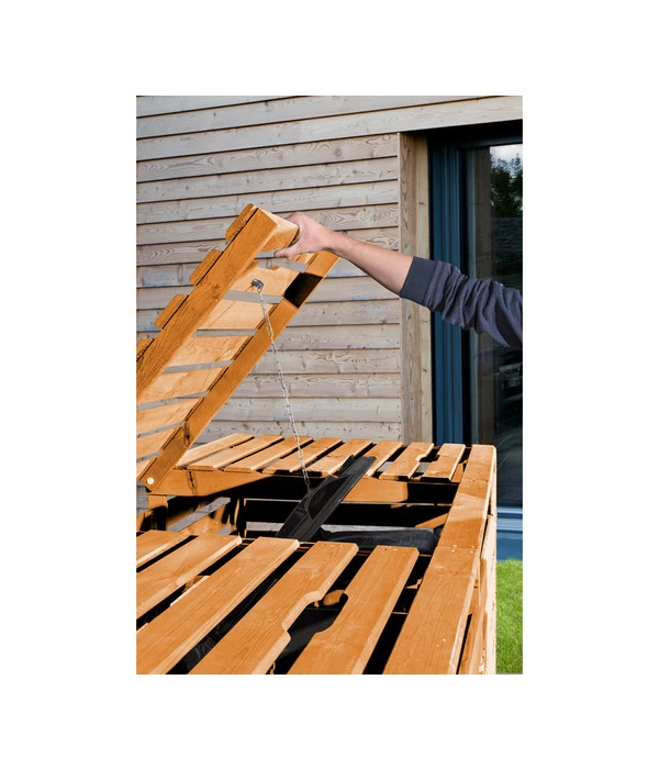 Das durchdachte Design der Weka Mülltonnenbox wird Ihnen den Alltag erleichtern. Die aufklappbaren Abdeckungen des Kastens werden mit einer Kette am Mülltonnendeckel befestigt, damit beide auf einmal geöffnet werden und ohne Probleme befüllt werden können. Die ergonomisch geformte Grifföffnung erlaubt dabei das einfache Greifen und Öffnen der Abdeckung ohne großen Kraftaufwand. Dank der großen, praktischen Türen ist das Ein- und Ausräumen der Mülltonnen schnell und unkompliziert, ohne lästiges Verkanten, möglich. Die hervorragende Belüftung des Mülltonnenschranks ist vor allem an heißen Sommertagen wichtig und reduziert die Geruchsentwicklung auf ein Minimum. Machen Sie sich all diese Vorteile zunutze und erleichtern Sie die Handhabung Ihrer Mülltonnen im Alltag.