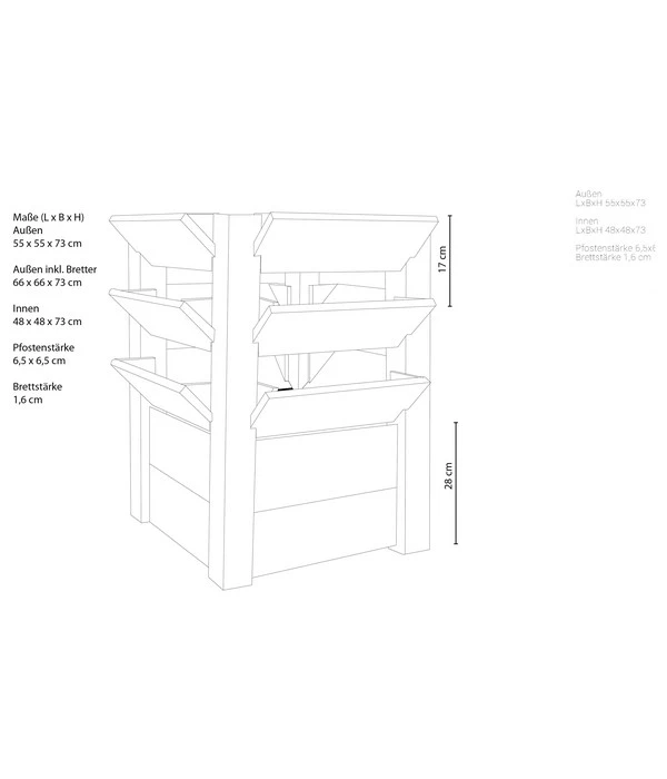Das qualitätsvolle Westmann Hochbeet Premium punktet mit einem durchdachten Design. Dank der seitlichen Nutzungsmöglichkeit vergrößert sich die Kulturfläche, sodass Sie mehr anbauen und sich dementsprechend über eine reichere Ernte freuen können. Für die Anzucht von köstlichen Erdbeeren oder für Kräuter sind zum Beispiel die seitlichen Bereiche gut geeignet. Auch bei einem geringen Platzangebot lässt sich das Hochbeet Premium aufgrund seiner kompakten Maße und seiner cleveren Konzeption nutzen. Sie können die robuste Konstruktion auf dem Balkon platzieren oder sie als praktische Grundstücksbegrenzung mit Mehrwert einsetzen. Bestellen Sie das Hochbeet Premium von Westmann und genießen Sie Ihr Gärtnerglück!