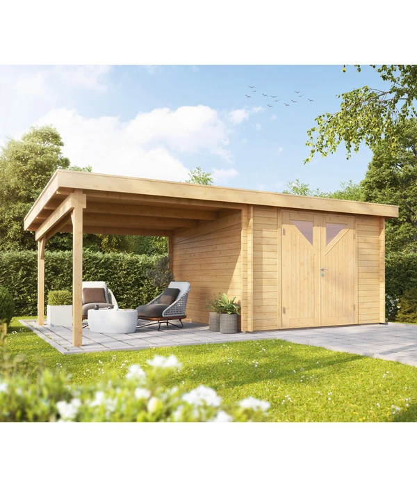 Wolff Finnhaus Gartenhaus Pulti 34-B Typ 4, inkl. Seitendach C, ca. B630/H217/T300 cm