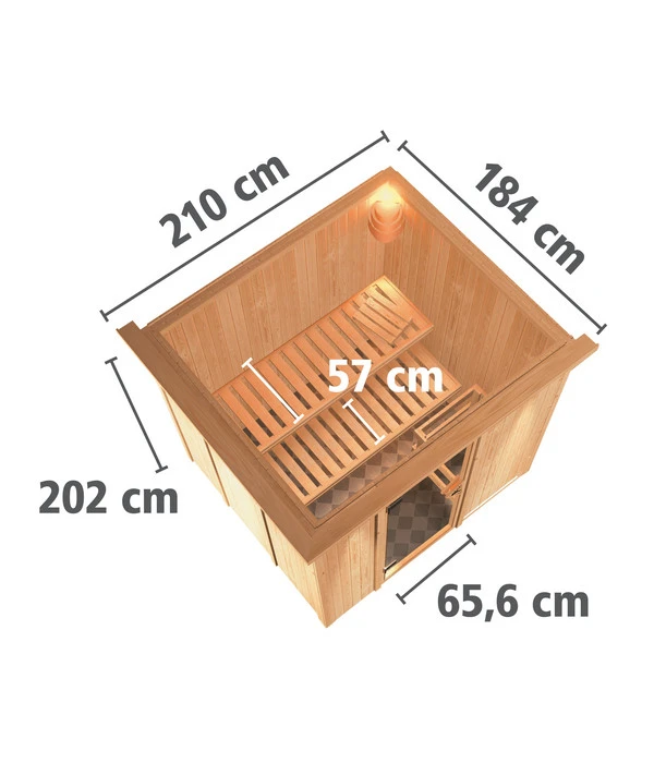 Sich zurücklehnen, den angenehmen Holzduft riechen, schwitzen und dabei herrlich entspannen – es gibt nichts Schöneres nach einem stressigen Tag. Und nichts Gesünderes, um den Kreislauf anzukurbeln, die Durchblutung zu fördern, die Muskeln zu entspannen und das Immunsystem zu stärken. Vor allem, wenn man dieses Vergnügen in ganz privater Atmosphäre in seiner eigenen Sauna genießen kann. Sie haben nur wenig Platz? Kein Problem, die Wolff Finnhaus Innensauna de luxe Despina bietet Ihnen alles für den perfekten Saunaspaß, braucht aber nicht viel Platz. Und weil dieses Saunamodell aus dem Hause Wolff Finnhaus nicht nur eine bewährte Material- und Verarbeitungsqualität garantiert, sondern aus teilweise vormontierten Elementen besteht, ist auch der Aufbau schnell erledigt. Gönnen Sie sich diesen kleinen Luxus und saunieren Sie in Zukunft ganz privat in der Wolff Finnhaus Innensauna de luxe Despina!